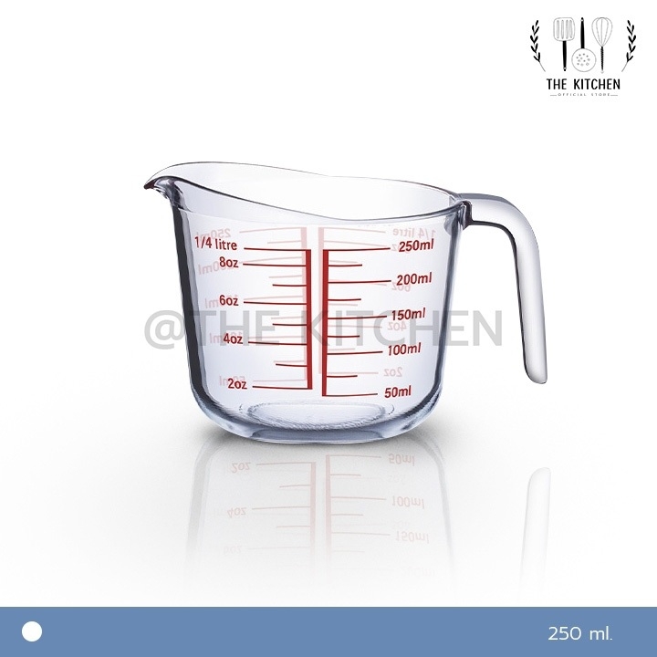 วัสดุการผลิต : ผลิตจากแก้วทนความร้อนสูงมีสเกล แถบสีแดง มองเห็นชัดเจน
