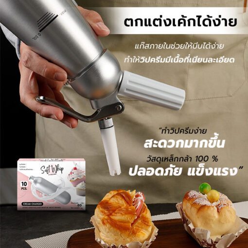 ช่วยให้ลูกค้า ประหยัดเวลาในการตีวิปครีมด้วยมือ หรือ ตีวิปครีมด้วยเครื่องตีผสมอาหาร ปลอดภัยต่ออาหารอีกด้วย